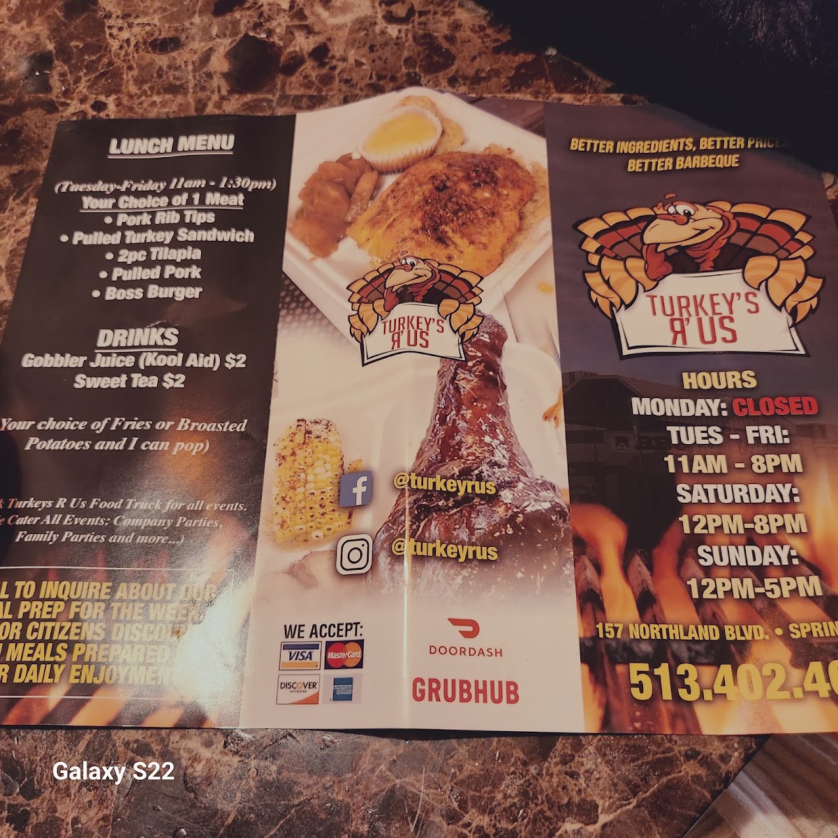 At Turkeys R Us, you're not just getting great food; you're enjoying a warm, friendly atmosphere that keeps customers coming back. Don't miss out on this culinary delight!